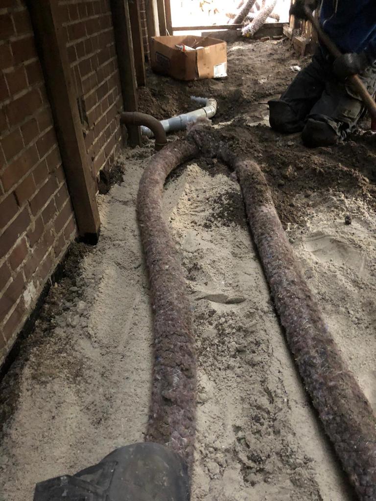Nieuw riool in nieuw gecreëerde kruipruimte