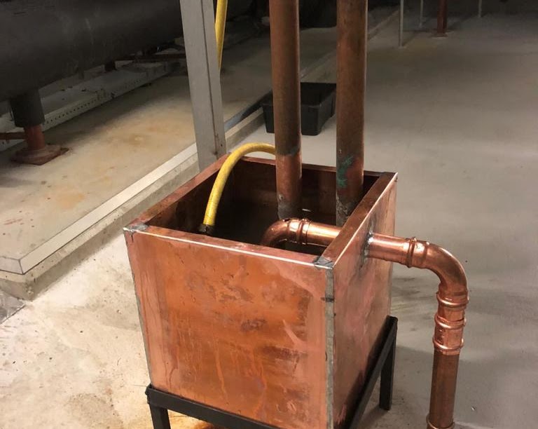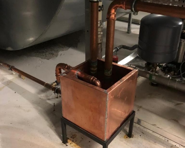 Koperen lekbak t.b.v. stoombevochtigers 2